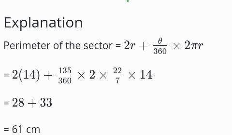 The segment of a circle of radius 14 cm has an angle of 135° at the centre. Calculate its perimeter.
