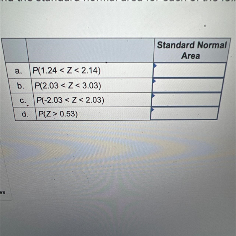 Find the standard normal area for each of the following (round your answer to 4 decimal places)