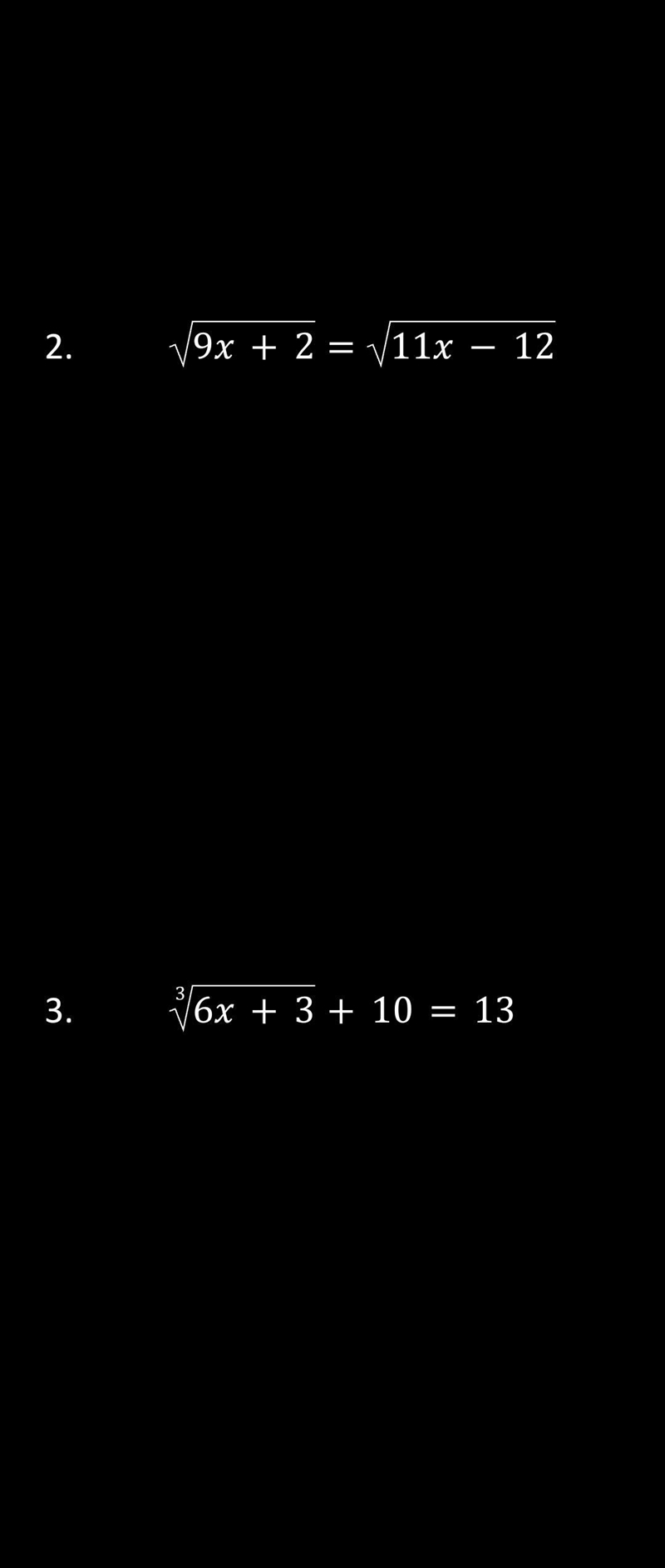 sqrt(9x + 2) = sqrt(11x - 12)