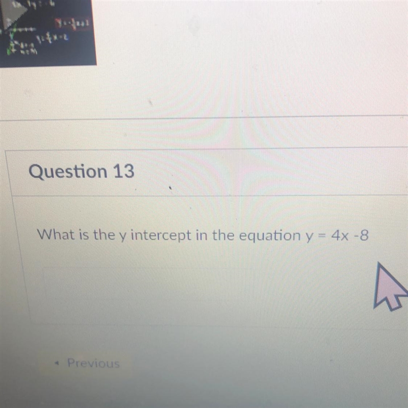 6TH GRADE MATH, What is the y intercept in the equation y= 4x - 8??