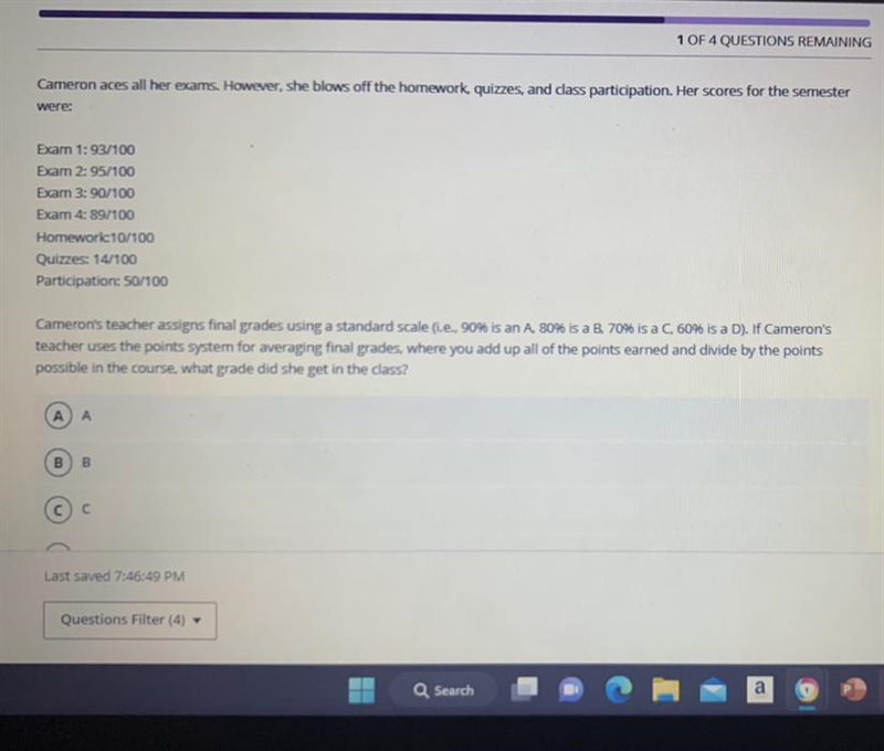 93+95+90+89+10+14+50=441 divided by 7=63. That is a D.