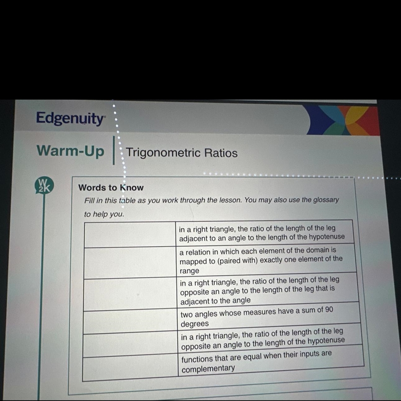 Fill in this table as you work through the lesson. You may also use the glossary to help you.