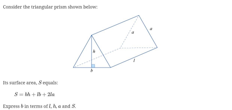 b(h + l) = S - 2la ← divide both sides by (h + l)
