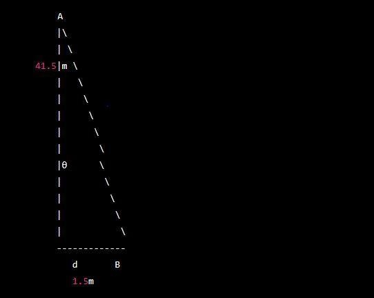 We know that AB = 41.5m - 1.5m = 40m, so the distance between the tree and the person is 40 meters.