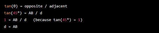 In the diagram above, A represents the top of the tree, B represents the person, θ represents the angle formed with the eyes, d represents the distance we want to find, and the line segment AB represents the height of the person.