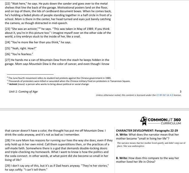 HURRY!! The question I need help with is B. Write: How does this compare to the way her mother lived her life in China?