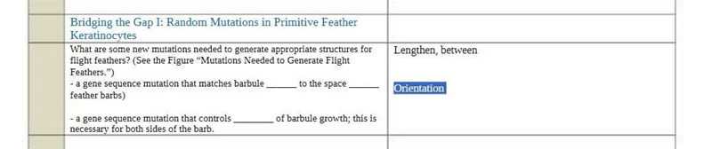 - a gene sequence mutation that matches barbule Lengthen to the space between rate feather barbs)