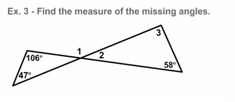 106+47=153 There are 180° in a triangle and you want to 180-153=27 find what left in the smaller one