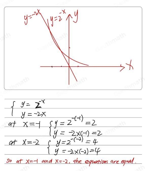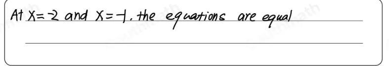 PLSSSS HURRY!!!!!!!!!!!!! Graph to solve the system At what x-values are the equations equal? x = 0 and x = 1 x = -3 and x = -2 x = 1 and x = 2 x = -2 and x = -1