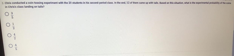 Step-by-step explanation: if you make a probability fraction and simplify it by dividing by 4, you would get 3/5.