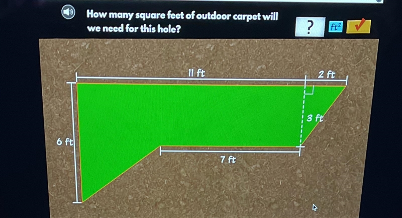 (I-Ready) How many square feet of outdoor carpet will we need for this hole? 11 ft 7 ft 6 ft 3 ft 2 ft