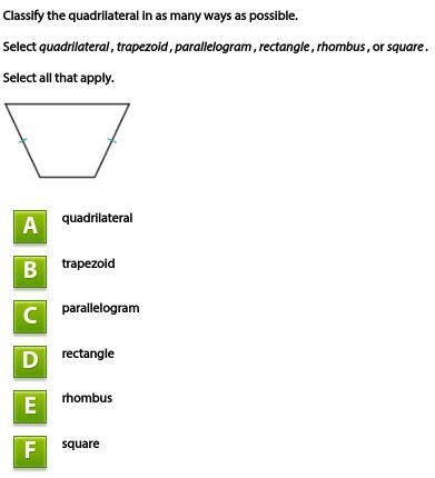 A quadrilateral is a shape that has four sides, and a trapezoid rectangle and rhombus and a square have four sides