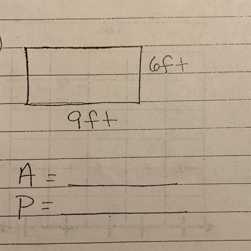Area equals length x width so in this case that would mean - 9x6 which equaled 54.