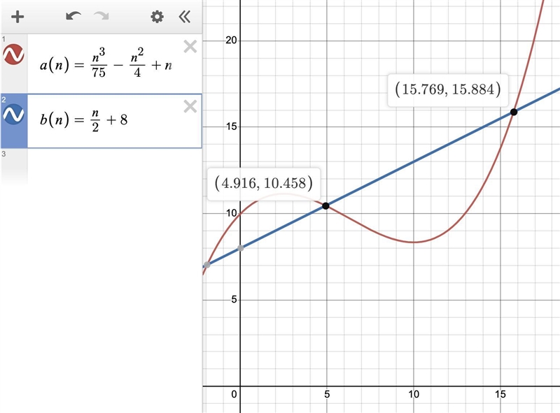 N^3/75 - N^2/4 + N + 10 < N/2 + 8