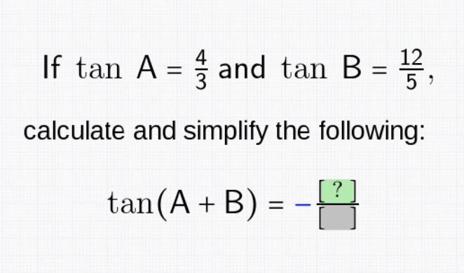 (4/3 + 12/5 ) / ( 1- (4/3 *(12/5) = -1 23/33