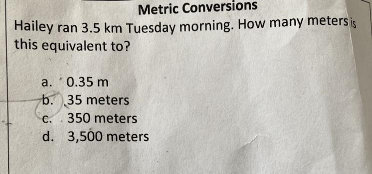 d. 3.5 km = 1,000 m / km = 3,500 m