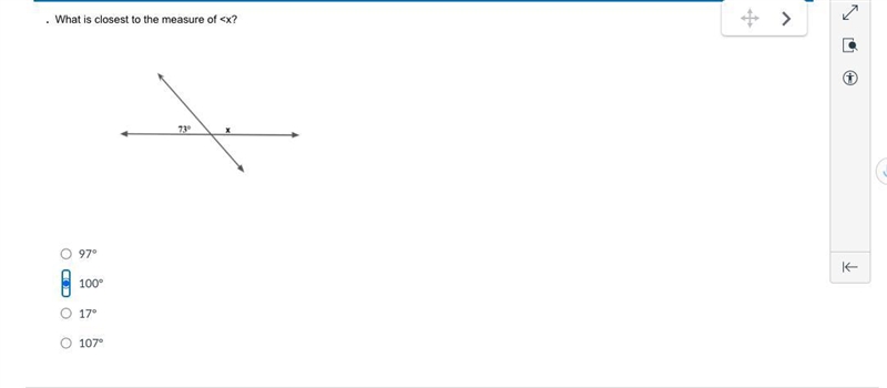 since the two angles are on a straight line, and a straight line is 180 degrees,180-73=x
