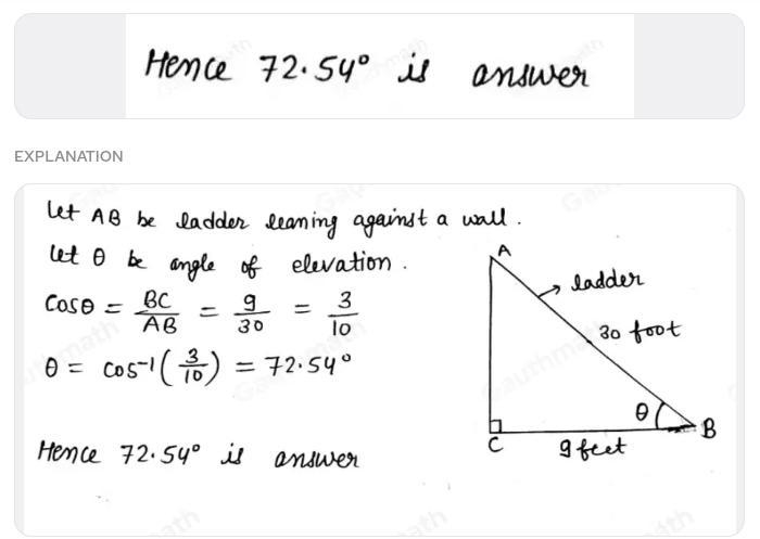 Find the angle of elevation that a 30-foot ladder, leaning against a wall, if the bottom
