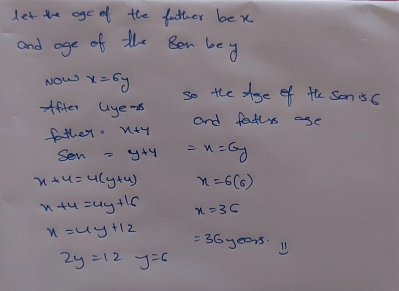 6 years ago,the age of the father was 4 times the old as his son's age will be 3 years hence but one year after ,a father's age will be 7 times as old as his son.Find …