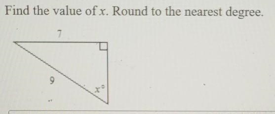 using SOH we can find the angle: sin^-1(7/9) = 51.06