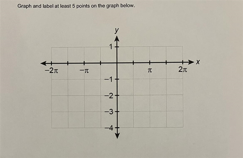 Next, we can use the amplitude of 2 to mark the highest and lowest points of the graph. The highest point will be 2 units above the midline at y = 0, and the lowest point will be 2 units below the midline at y = -4.