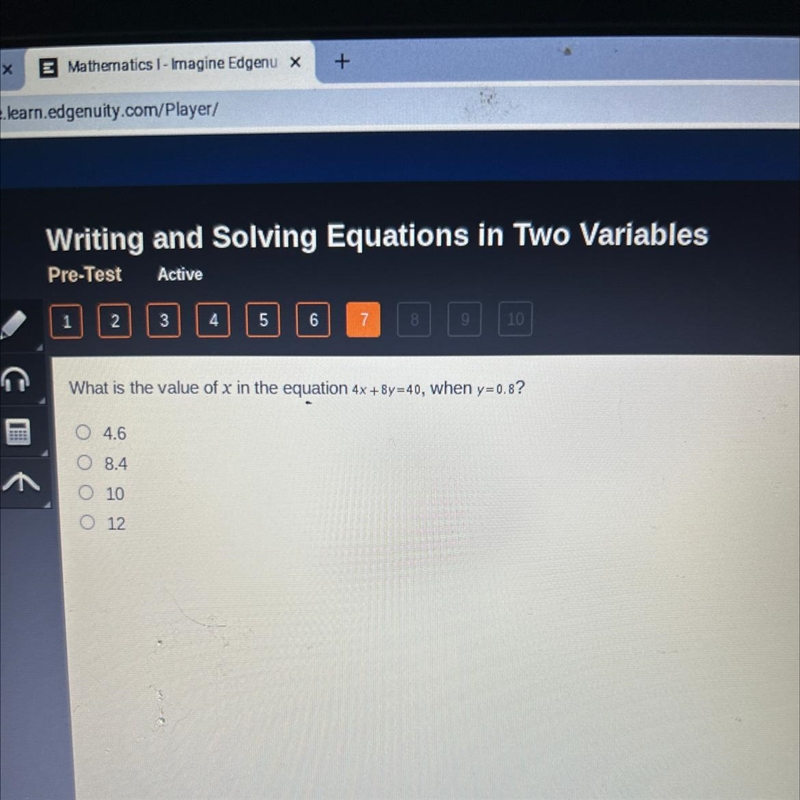 — 4x = 40 - 8(0.8) = 40 - 6.4 = 33.6