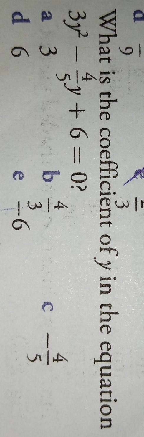 Therefore, the coefficient of y in the equation 3y² - ⅘y + 6 = 0 is -⅘.