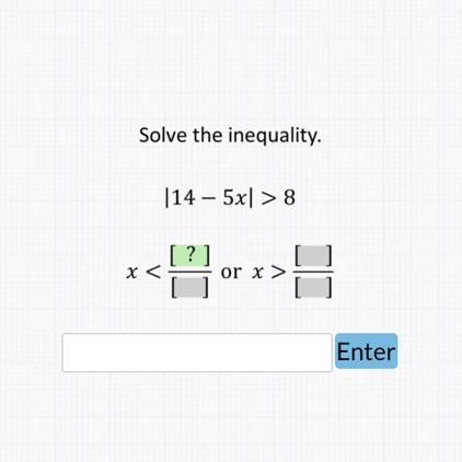 if |14-5x|>8, 14-5x > 8, or 14-5x < -8 because the absolute value of any number less than -8 is more than 8