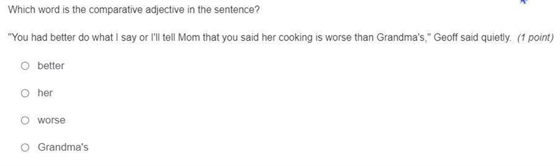 "Worse" is used to compare the quality of cooking done by the mom and the grandmother