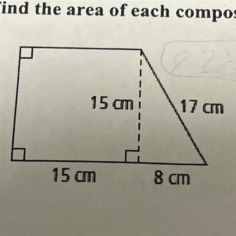 Area of triangle = bh/2 = 15*8/2 = 60 cm²