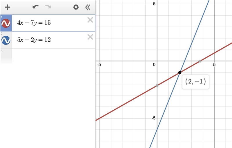The solution is (x, y) = (2, -1).