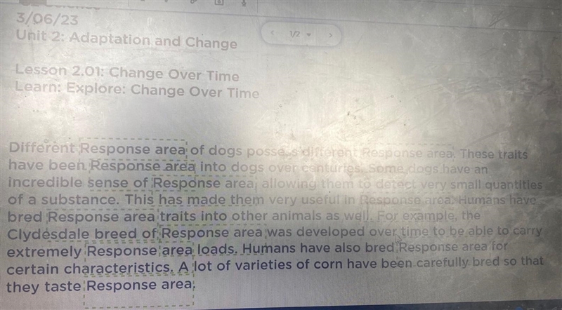 Use word bank below to type in and complete sentences. 1 point each. sweet smell traits hunting horses breeds bred corn large favorable