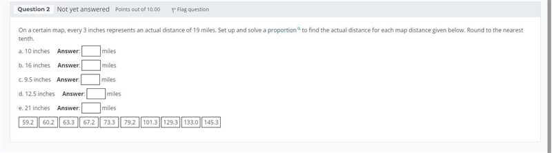 a. 10 inches = 10 x 19/3 = 63.3 miles