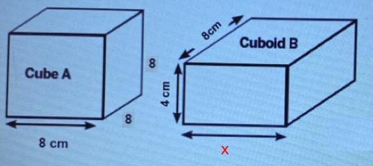 since the one on the left is a cube, all its sides are equal, and we know the cube and cuboid both have the same volume, so