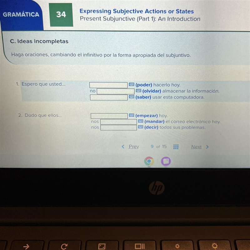 Complete las siguientes oraciones con la forma apropiada de los infinitivos. En algunos casos el infinitivo es la forma apropiada, pero en otros casos es necesario usar el presente de subjuntivo. Please