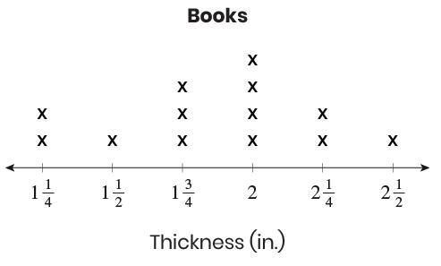 Jada recorded the thickness a of a set of books. This line plot shows her results.
