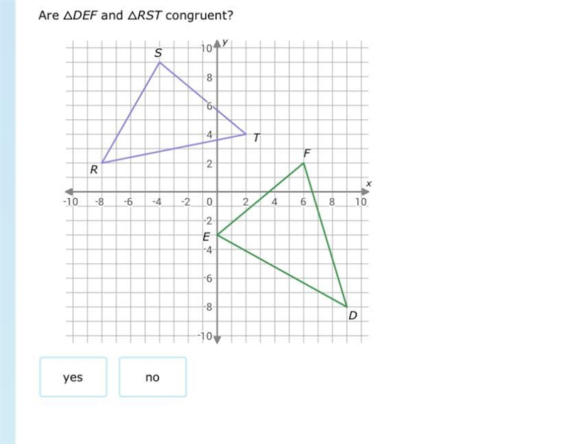 You want to know if the two triangles shown on the graph are congruent.