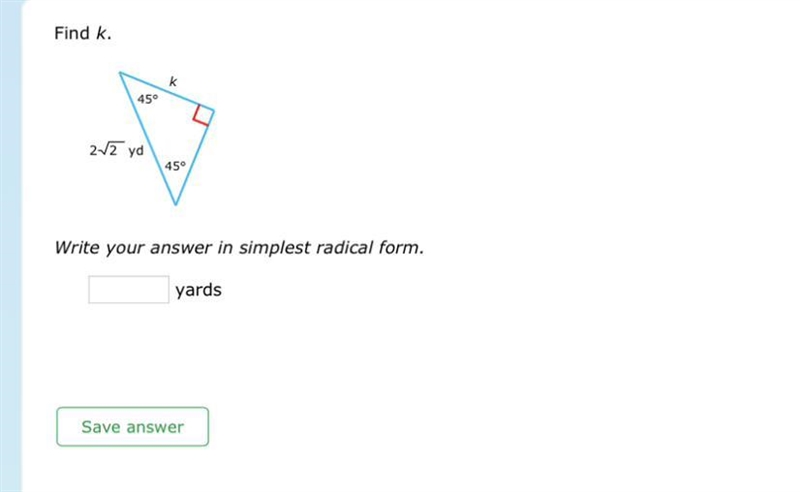 using the sine or cosine ratios with either of the 45° angles and exact value