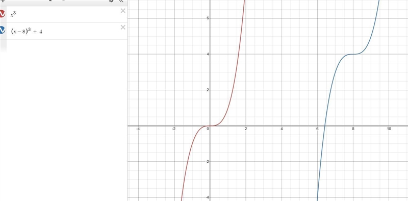 How does the graph of f(x) = (x − 8)3 + 4 compare to the parent function g(x) = x-example-1