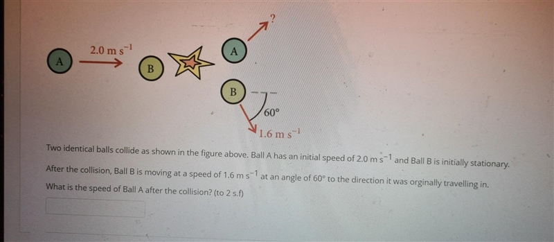 R-A = √(1.2² + 1.3856²) = 1.83 ≈ 1.8 m/s resultant velocity of ball A after the collision