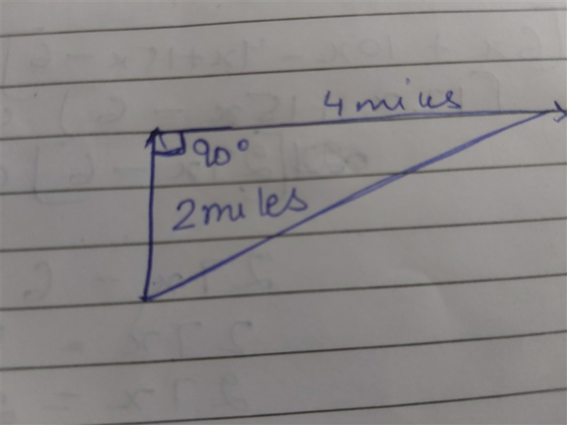 The first section traveled represents a leg of 2 miles, the second section is the other leg and measures 4 miles.