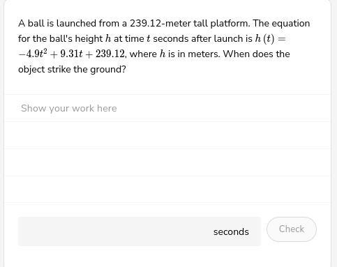 So: 0 = - 4.9 t^2 + 9.31 t + 239.12