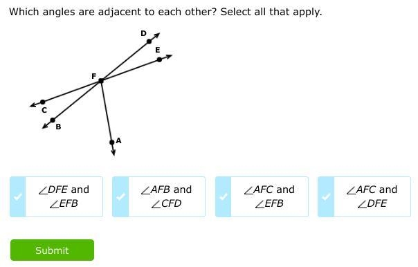 All these properties are shown in only Option (A) ∠DFE and ∠EFB.