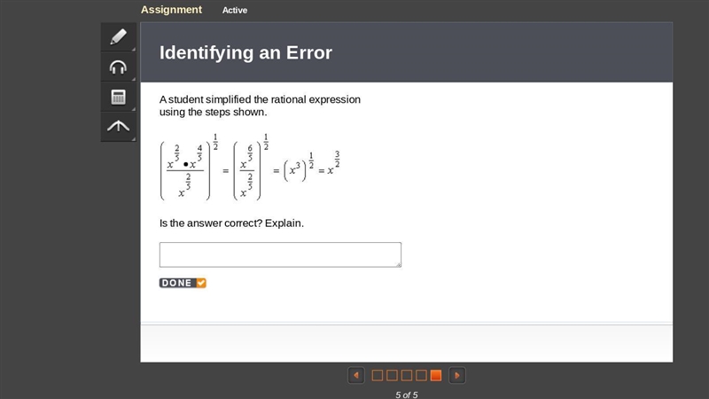 In the second step, the student did not use the quotient of powers property correctly. Instead, they should have subtracted inside the parentheses instead of dividing. This would have left them with