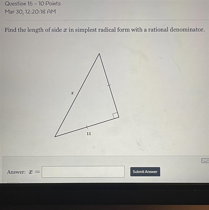 Hence, the value of x in its simplest form with a rational denominator is 11/1 or just 11.