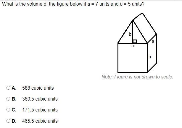 [ 1/2 ( 7 *5) + 7*7 ] * 7 = 465.5 units^3