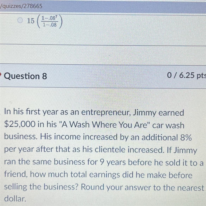 FV = 25 000 [ (1+.08)^9 -1 ]/ .08 = ~ $ 312 189
