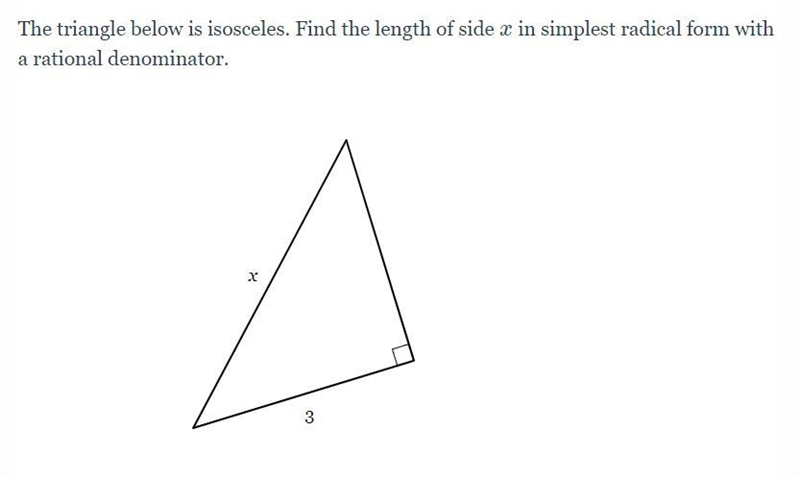 You want the length x of the hypotenuse of an isosceles right triangle with sides of length 3.