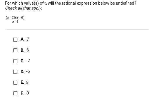 -7 + 7 = 0 so -7 is the only number which makes the expression undefined