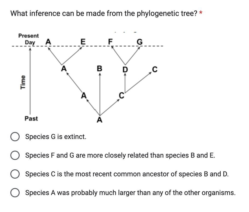 Answer: Species A was probably much larger than any of the other organisms.